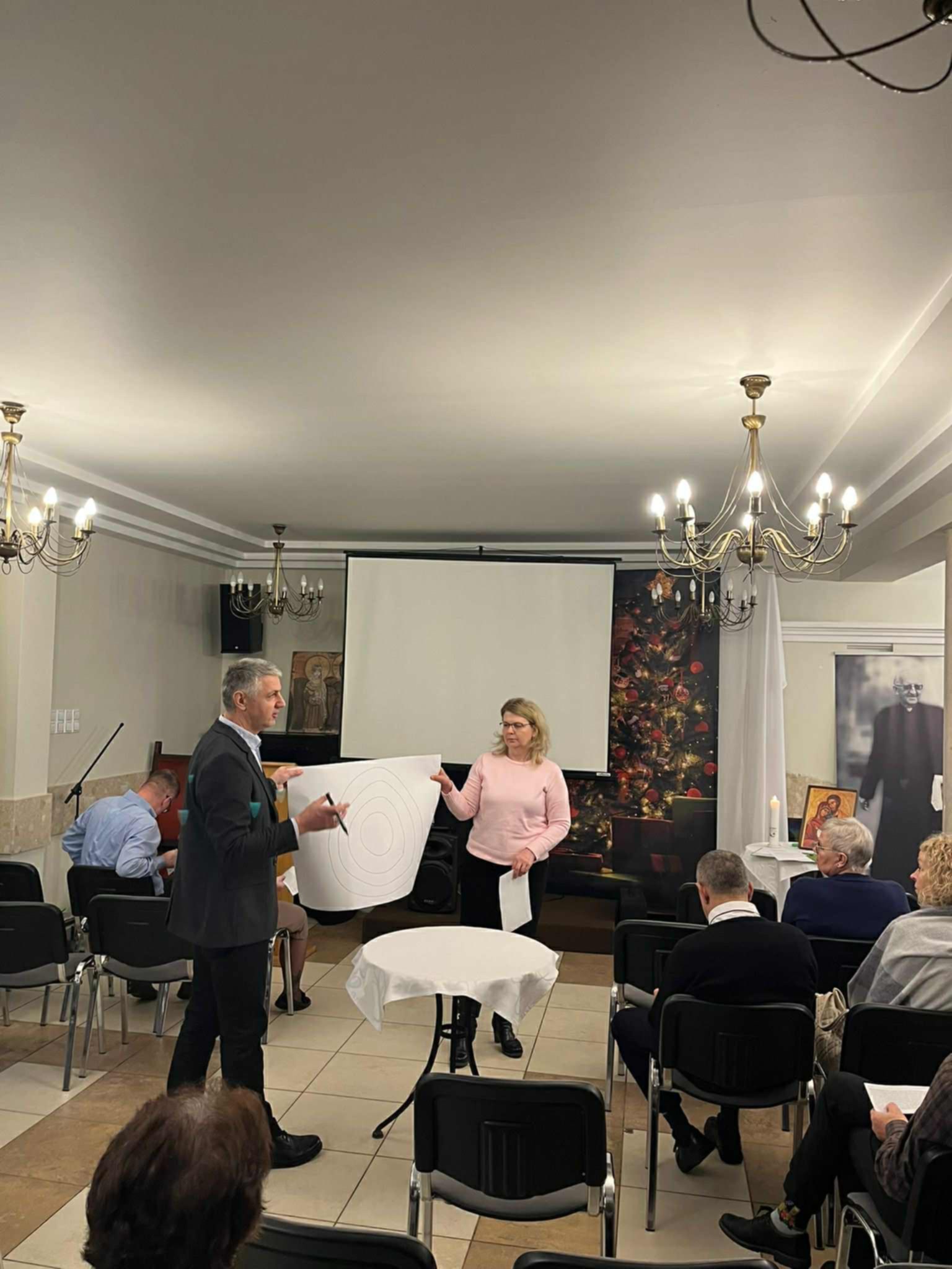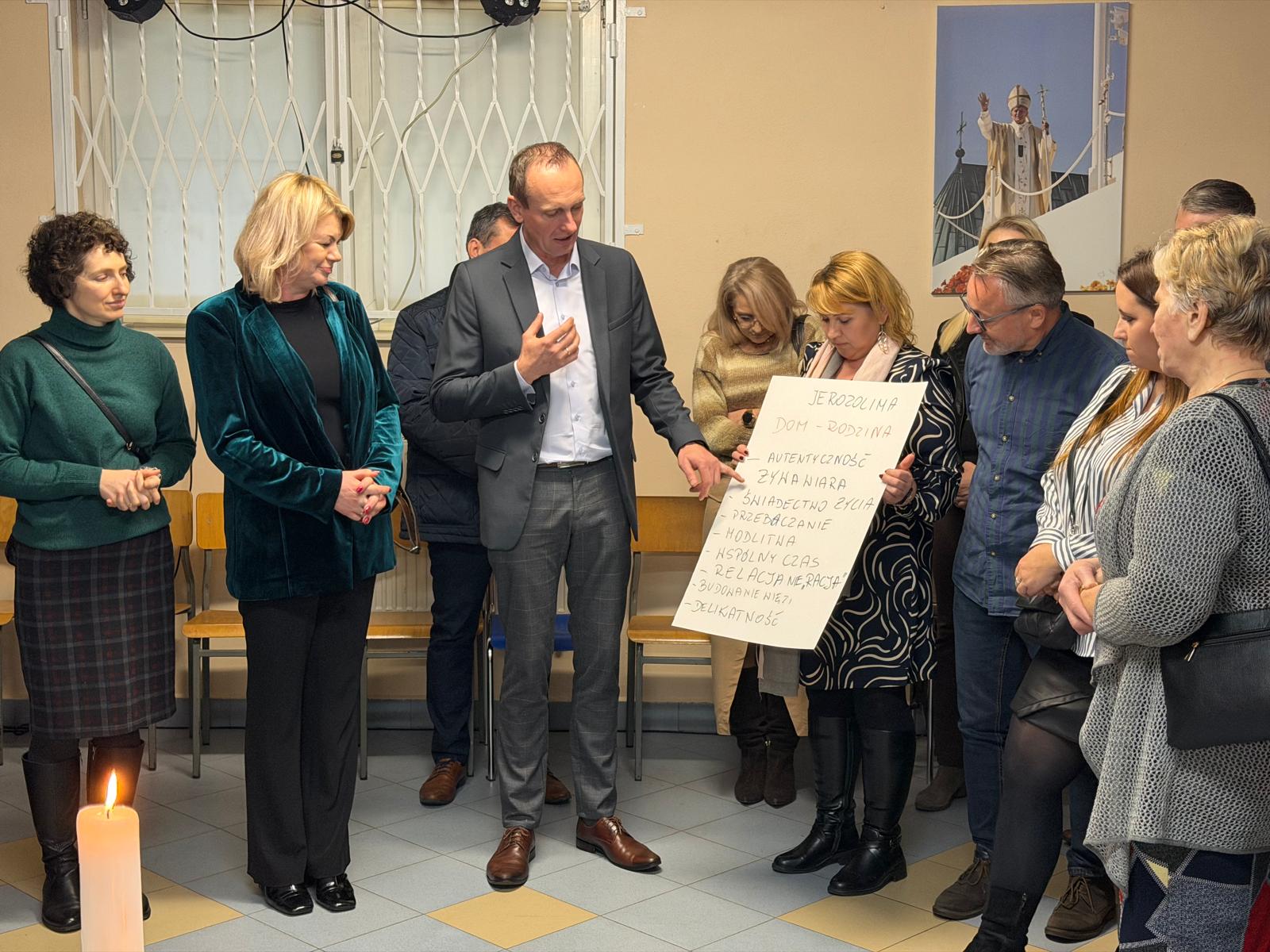 Rejonowe Dni Wspólnoty Ruchu Światło Życie przeżywane 7 grudnia 2025 roku, były dla nas czasem ogromnej radości, wzruszeń i odnowy Ducha. Świętowanie rozpoczęliśmy uroczystą Mszą Świętą w Sanktuarium Świętej Rodziny w Wyszkowie. Eucharystii przewodniczył nasz Moderator Rejonu Wyszków, ks. Kazimierz Wądołowski. Szczególnym momentem było złożenie deklaracji przez pięć małżeństw z kręgu pilotowanego, które wobec całej wspólnoty Kościoła wyraziły pragnienie wstąpienia do Domowego Kościoła – gałęzi rodzinnej Ruchu Światło–Życie. Było to doświadczenie wielkiej jedności, ale też świadectwo pięknej, dojrzałej decyzji małżonków, którzy zapragnęli wejść na drogę formacji i uświęcania codziennego życia. Po Mszy Świętej trwaliśmy na Namiocie spotkania, wsłuchując się w to, co Pan Bóg chce nam powiedzieć w ciszy. Następnie udaliśmy się do salki parafialnej, gdzie czekała nas kolejna część wspólnotowych przeżyć. Oficjalnie powitała nas para rejonowa – Basia i Mirek Gołdys, a wielką radością była obecność pary diecezjalnej, Bożeny i Grzegorza Truszkowskich.