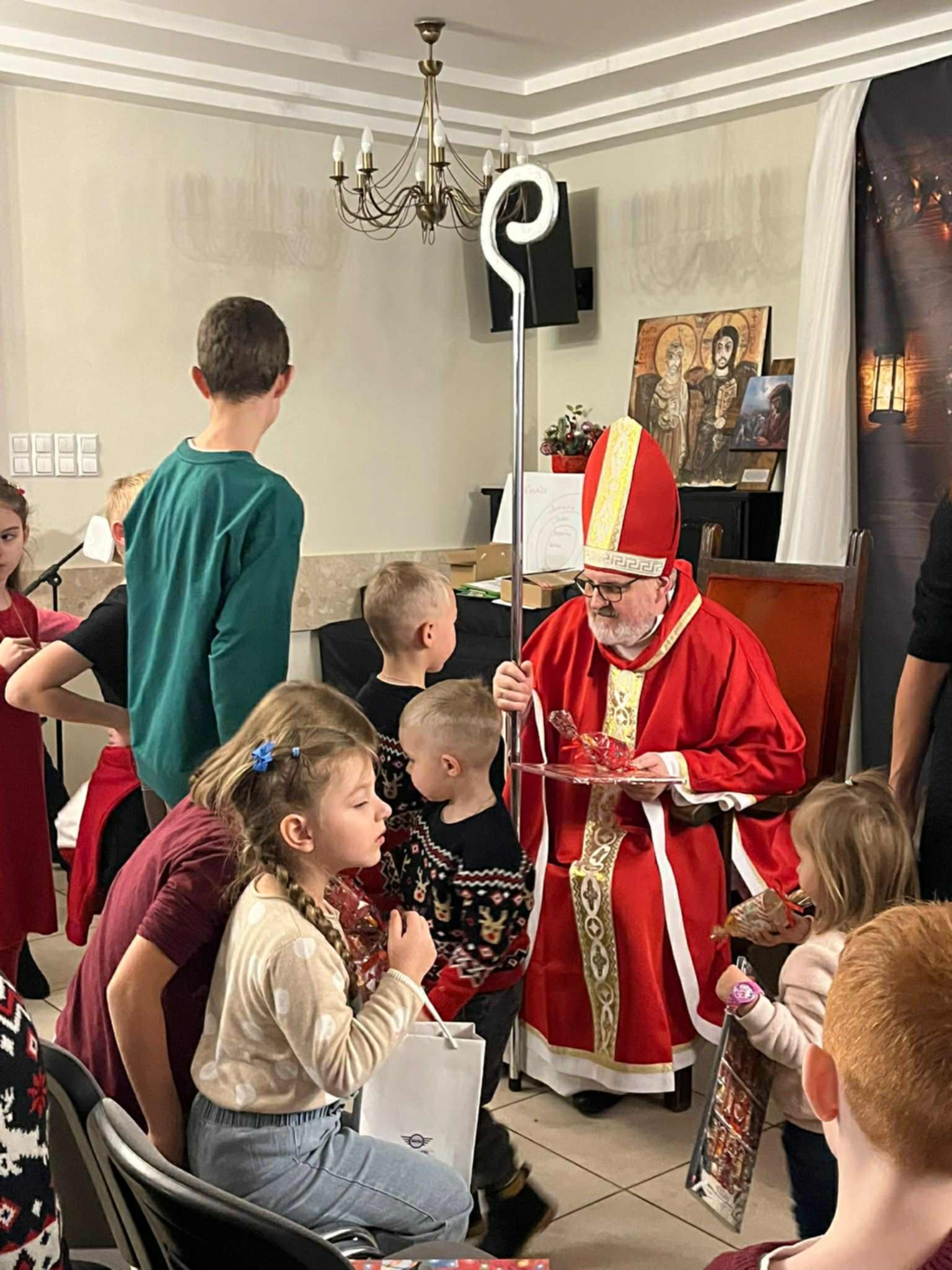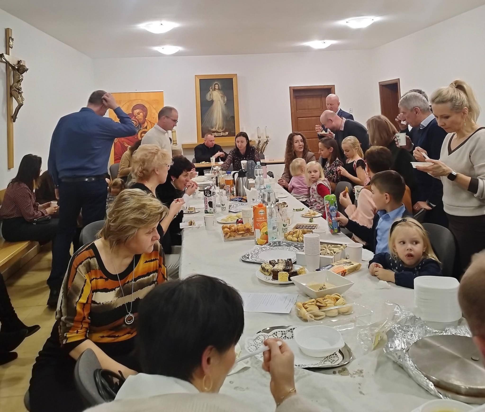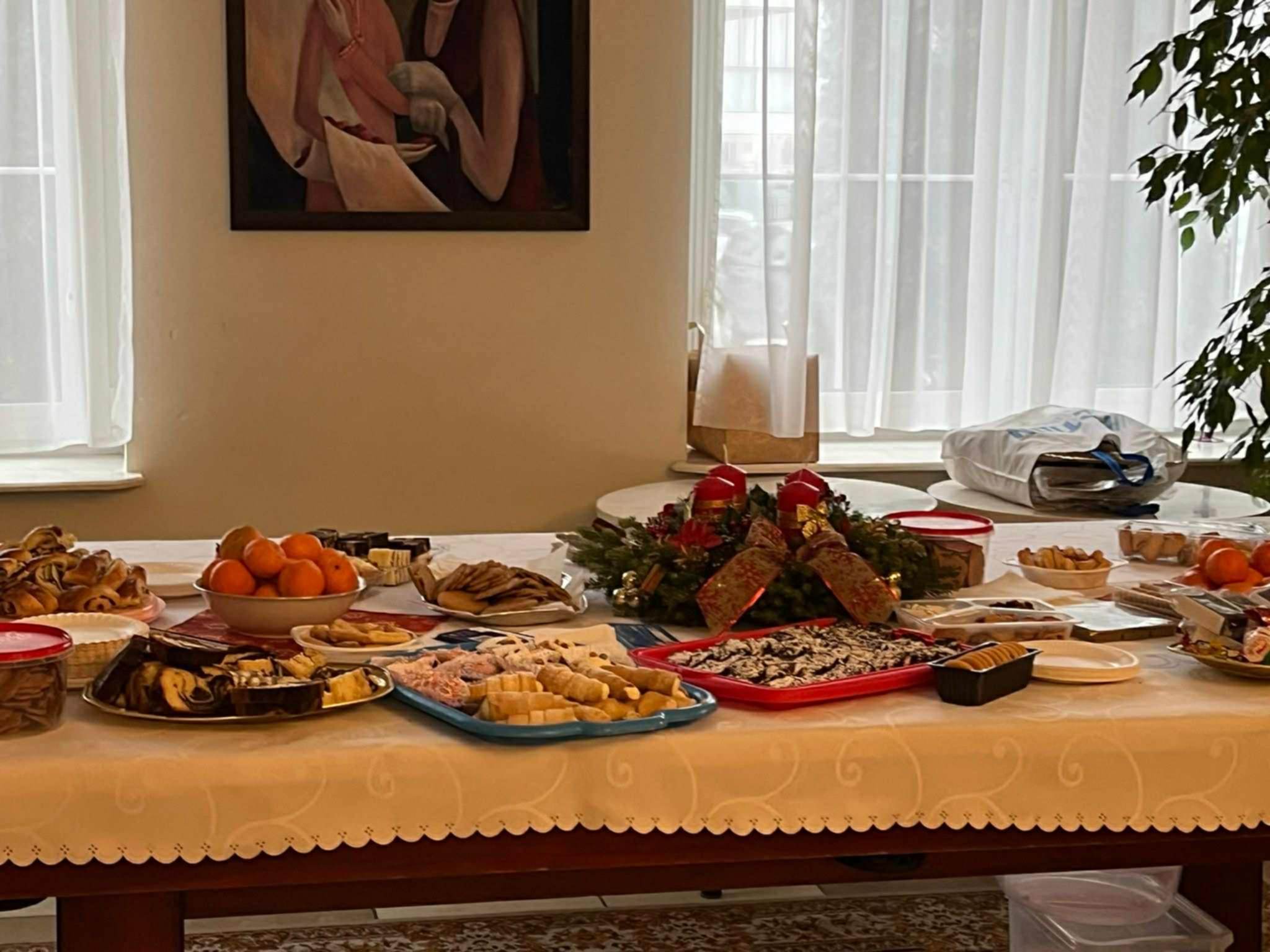 Nie zabrakło też radosnego czasu Agapy. W jej trakcie odwiedził nas święty Mikołaj 🎅, obdarowując wszystkich „małym co nieco” słodkiego. Zadał też zgromadzonym bardzo ciekawe pytanie: