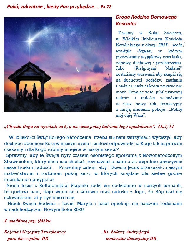 Droga Wspólnoto Domowego Kościoła przyjmijmy Błogosławieństwo Pańskie na nowy rok formacyjny 2026 .