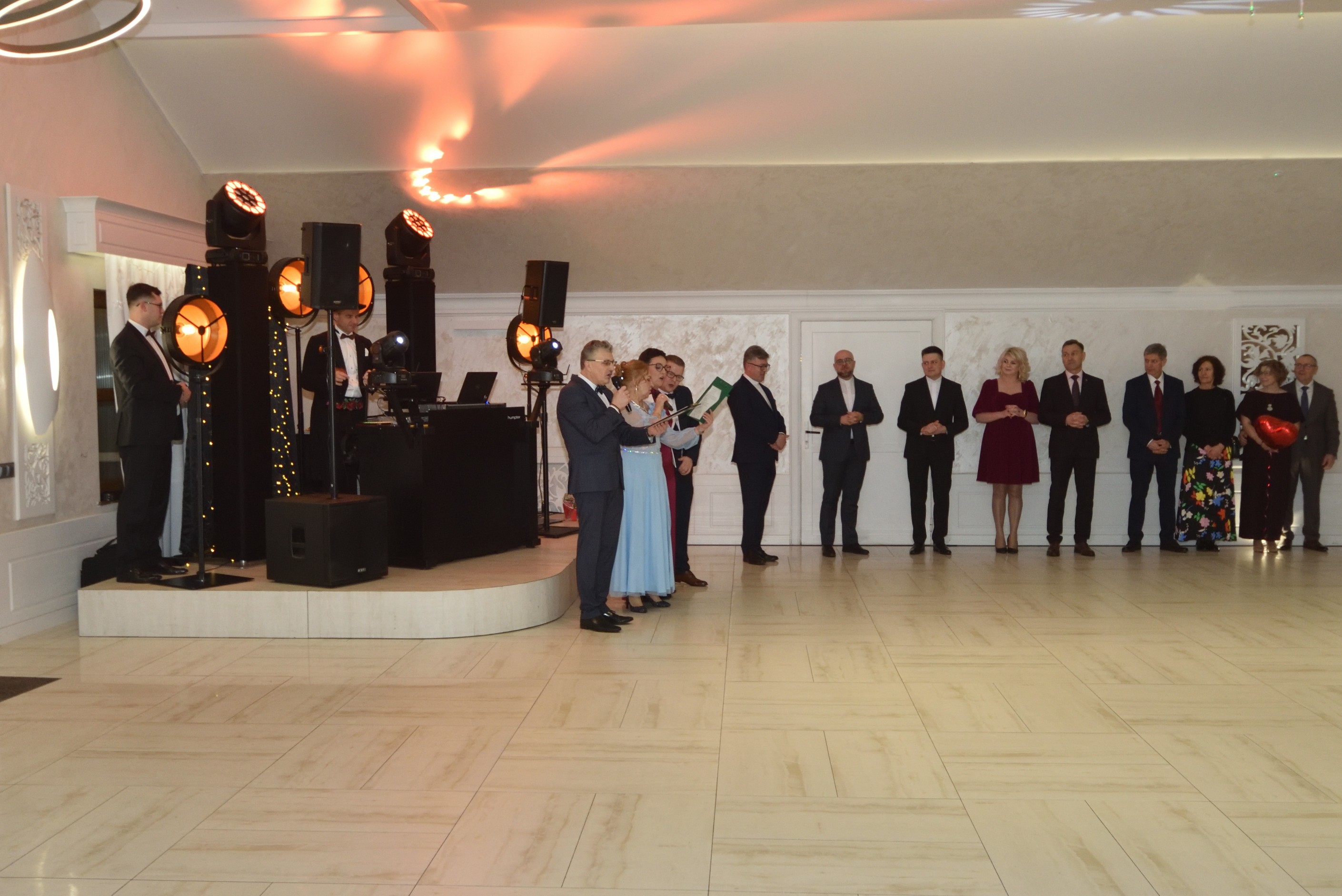 Chwilę potem nastąpiło oficjalne rozpoczęcie Balu przez Pary Rejonowe wraz z Moderatorami: Łomża Wschód na czele z Ks. Wojciechem Turowskim oraz Łomża Zachód z Ks. Marcinem Budnym. Warto wspomnieć o podziękowaniach, które złożyły Pary Rejonowe na ręce tych wszystkich, którzy często z wielkim sercem i zaangażowaniem, po cichu, tworzyli fundament tego Balu, a są Nimi: Anna i Tomasz Przybyszewscy, Beata i Tomasz Twarowscy, Anita i Krzysztof Narewscy, Ewa i Jan Kazimierczuk, Ewelina i Dariusz Ciszewscy oraz Edyta i Grzegorz Żukowscy. To dzięki Nim wszystko nabiera harmonii i piękna. Nie sposób pominąć także właścicieli lokalu Państwa Beatę i Andrzeja Staniurskich, którzy goszczą Nas w swoim lokalu.