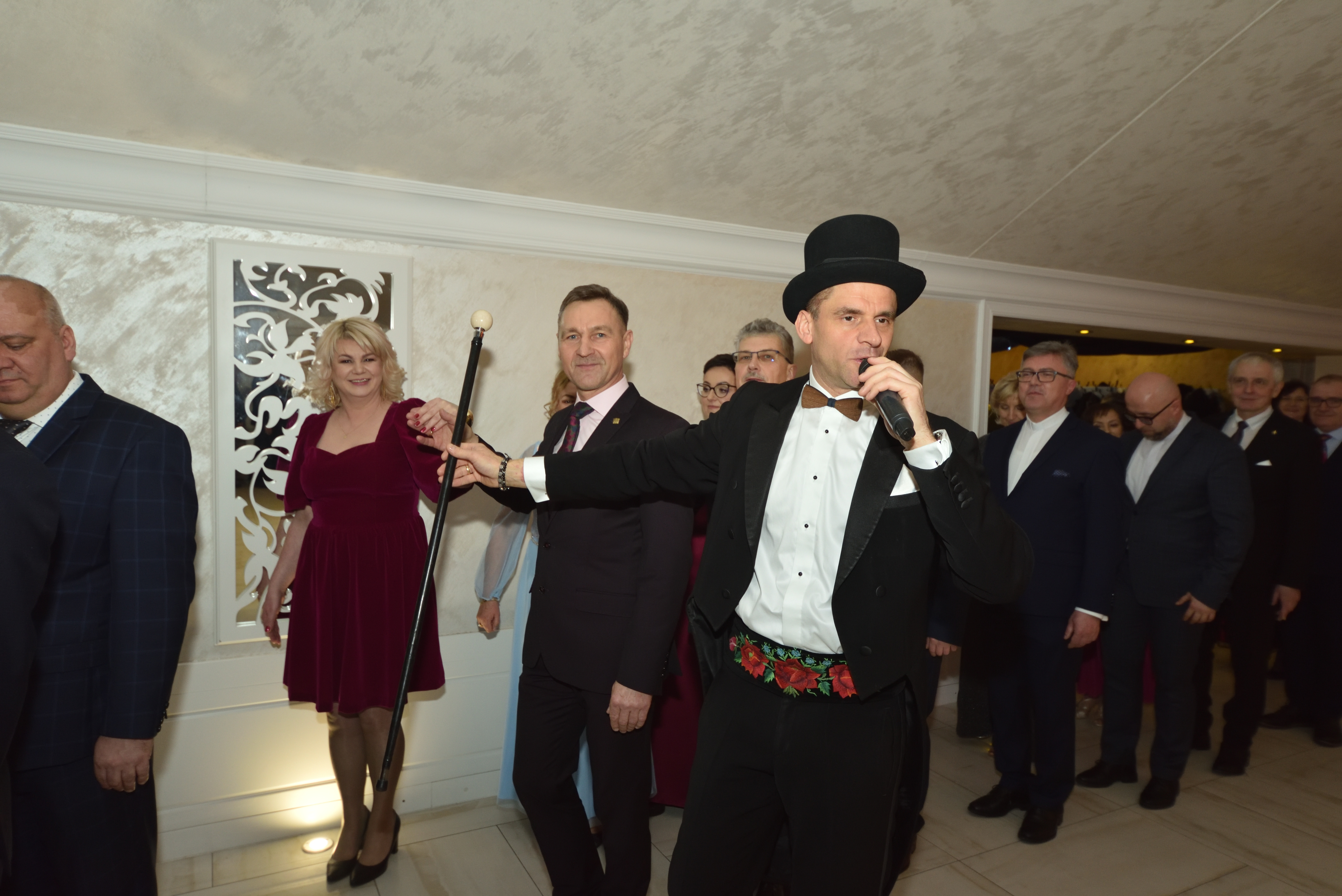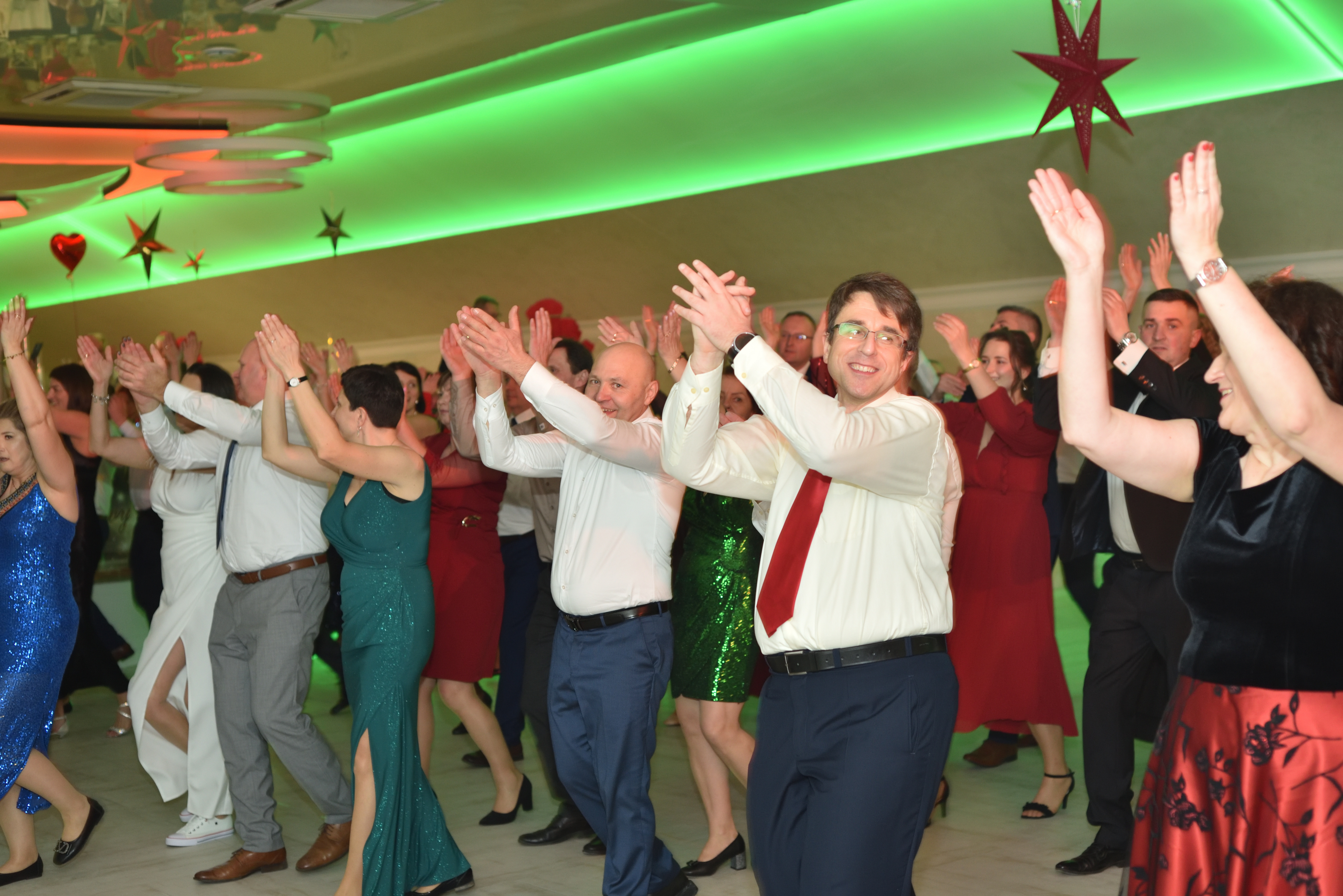Po kolacji wodzirej Arek przejął stery. Zabawy, tańce i wspólne okrzyki sprawiły, że wszyscy świetnie się bawili. Kiedy padła informacja o foto budce – nagle ustawiła się kolejka pełna piór, kapeluszy i szerokich uśmiechów.