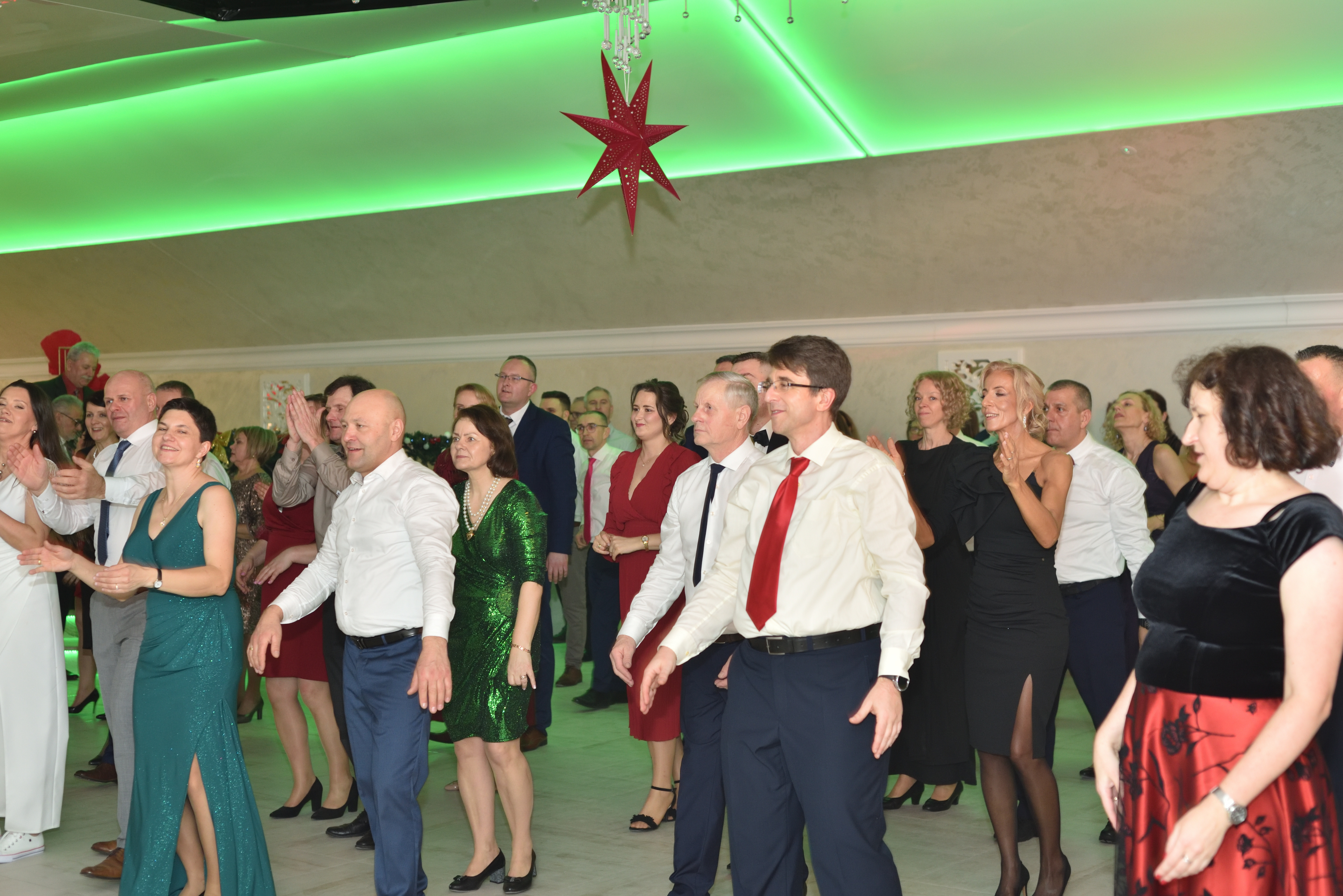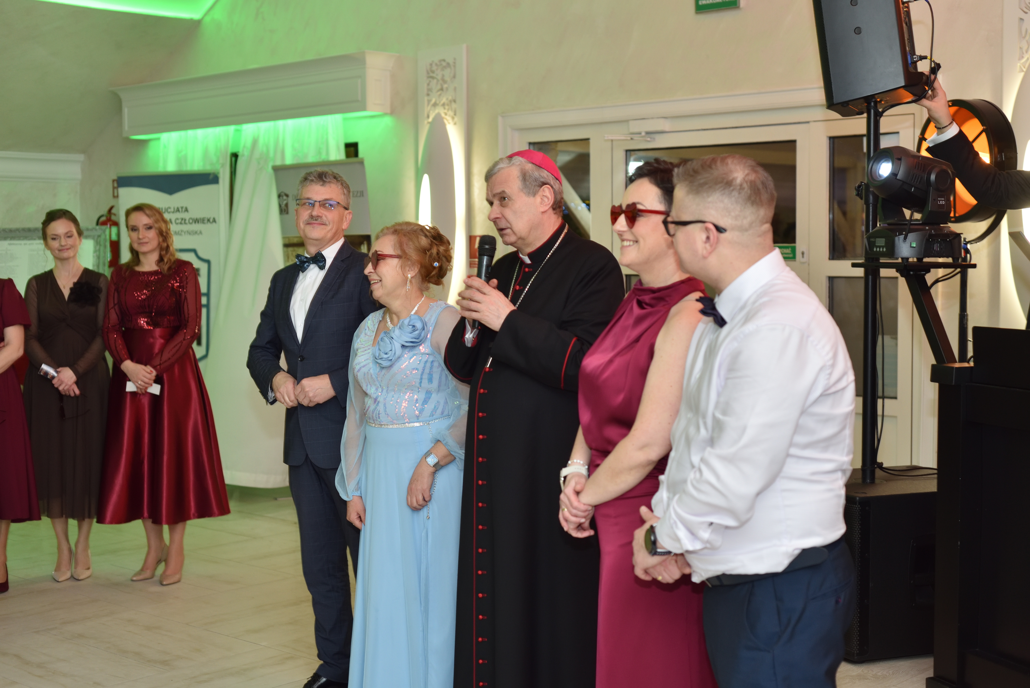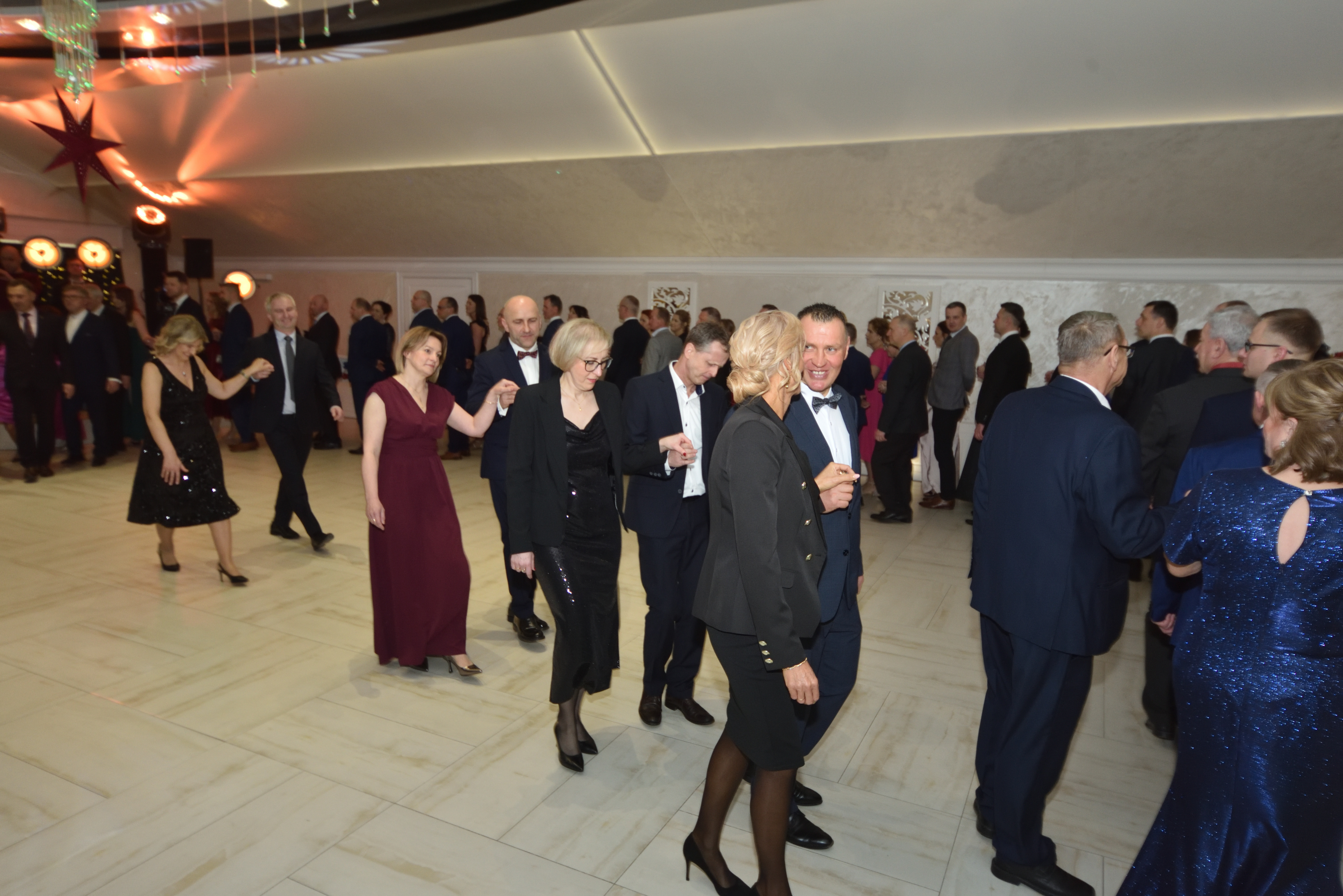 Niedługo później wszyscy ustawili się do wspólnego zdjęcia. Ktoś żartował, ktoś poprawiał krawat, ktoś inny sukienkę, a po chwili rozbrzmiały pierwsze takty poloneza, który poprowadziła Para Diecezjalna, a parkiet zapełnił się pozostałymi parami. Dwa, trzy tańce wystarczyły, by przełamać pierwszą nieśmiałość i rozkręcić zabawę.